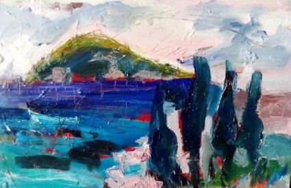 Ponekad razmišljam i ovako. Ivić slika jedan trenutak vremena, kada sve miruje i more i kuće i brodovi i ptice i vjetrovi, kada je sve zastalo samo za trenutak kako bi umjetnik zabilježio na najbolji način, vrijeme koje se više neće ponoviti i vjetrovi će zapuhati na drugu stranu i drveće više neće biti tako visoko i uspravno a i ptice će se dugačije glasati, jedino će kuće na obali ostati iste, same i puste i more će ostati isto, jednako plavo kao i uvijek.