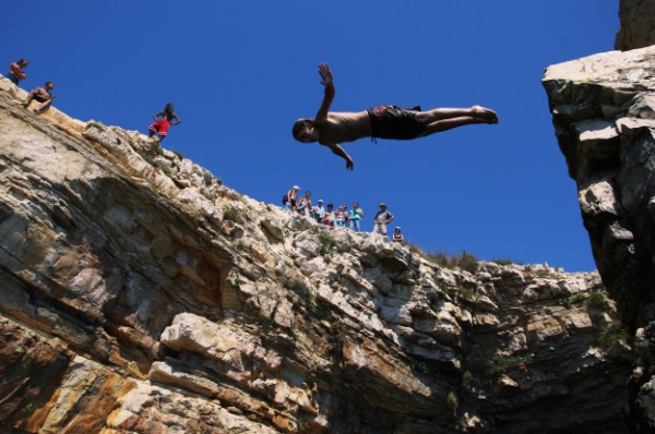 Skakanje sa stijena Kanjona Mala Kolumbarica na najjužnijoj točci Istre na samom rtu Kamenjak. Ljeto se bliži kraju, škola počinje za sedam dana, ali još koji skok se stigne "odraditi" jer je temperatura mora još uvijek sasvim zadovoljavajuća za kupanje. (METRO)