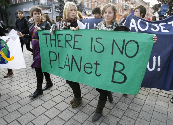 Prosvjednici nose natpis "NE POSTOJI PLANet B" na demonstracijama organiziranim od strane političkih i eko aktivista u Malmu. Prosvjed se odvija u isto vrijeme kada i Europski socijalni forum. (METRO PORTAL)