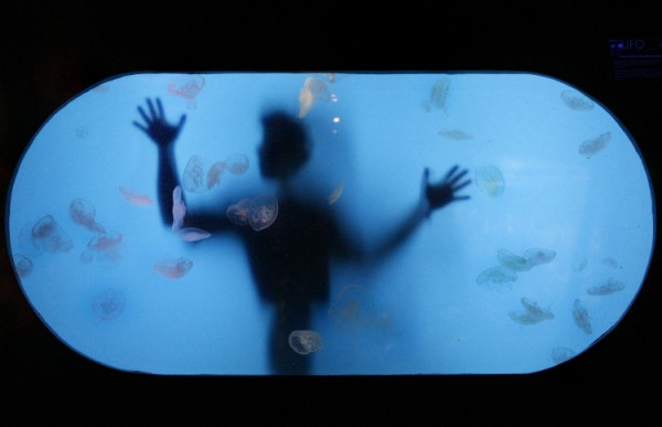 Silueta biologa mora ocrtava se na staklu bazena s mjesečevim meduzama tokom redovitog održavanja nastambe. Melbournski akvarij otvoren je u siječnju 2000. nakon gradnje od veljače 1998. do prosinca 1999. po dizajnu arhitekata iz Peddle Thorpa, a izgleda kao brod navučen u rijeku. (metro portal)