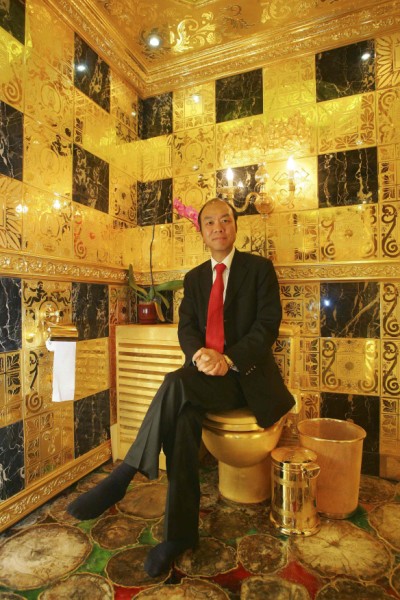 Lam Sai Wing, predsjednik Hang Fung Gold Technology Grupe pozire u kupaonici potpuno ukrašenoj zlatom koja se nalazi u sklopu njegove prodavaonice nakitom u Hong Kongu. Iz kompanije su danas izvjestili kako je Lam danas naglo preminuo u svom domu u 53. godini nakon iznenadne kratke bolesti. (metro portal)