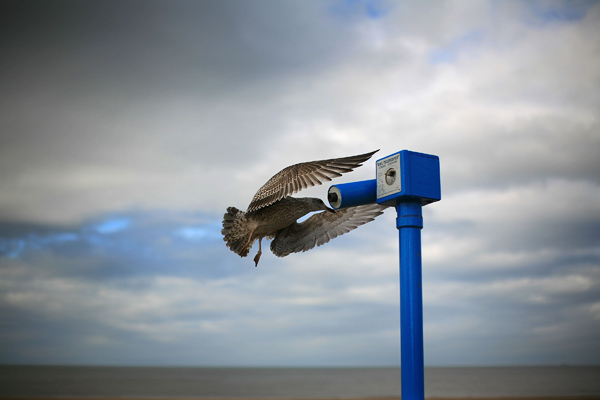 Galeb slijeće na teleskop na plaži Rhyl, koja je nekad bila elegantno viktorijansko odmaralište. Jeftine avionske karte i aranžmani doveli su mjesto u 10% najsiromašnijih dijelova zemlje.