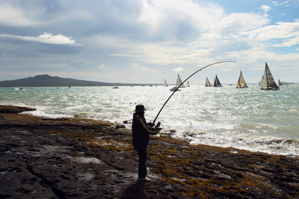 Flotila brodova izlazi na otvoreno more kraj Aucklanda na Novom Zelandu, na startu Coastal Classic Yacht Race, godišnje regate koja se plovi od Devonporta do Russela.