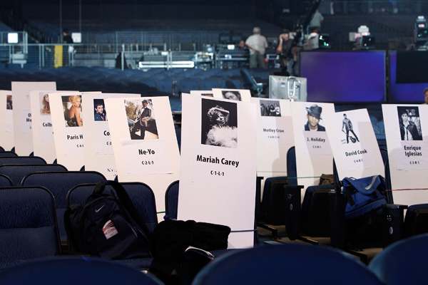 American Music Awards 2008. počeo je s probama, a publiku glume velike table s imenima.
