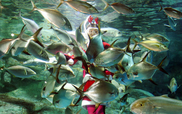 Djeda Božićnjaka guraju apsolutno svugdje, pa je ovaj završio među ribama u seoulskom akvariju.