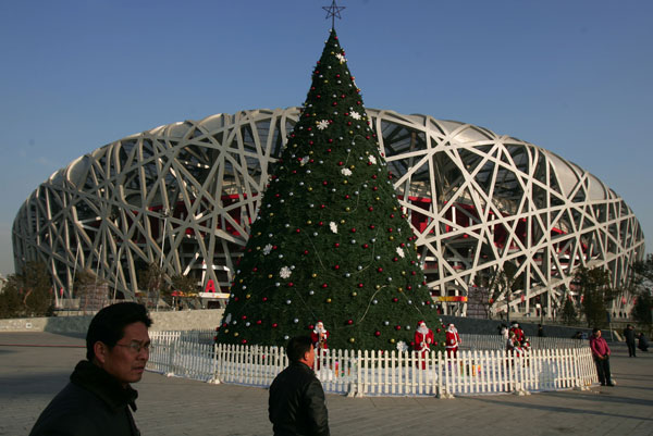 Pekinško arhitektonsko čudo dobilo je krasnu jelku kao ukras, bez obzira što Božić i nije praznik u Kini.