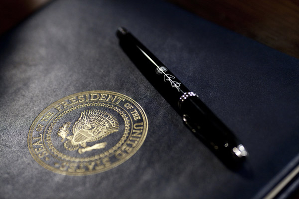 Olovka i omot na slici služe za potpisivanje predsjedničkih odluka ... Ne treba naglašavati koliko će naši životi biti bolji ili lošiji zbog sadržaja ...