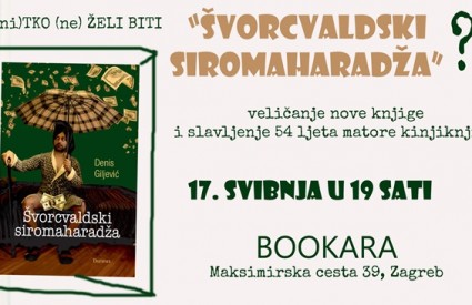 ŠVORCVALDSKI SIROMAHARADŽA, treća zbirka priča okorjelog saloonskog revolucinika, predstavit će sebe & autora, riječju, oriđinđe! Nekritičko slavljenje najnovijeg čeda probisvjetske krindževnosti i skoka s elementima sunovrata unovi rođendalj njegovog oca & majke & tate & mate, riječju, besmislastica, početće 17. svibnja u 19:00 sati u najluckastijoj knižari u gradu/državi, a ziher i šire, BOOKARI (Maksimirska cesta 39)!