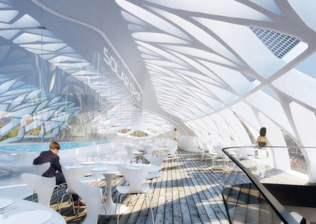 Pariško zdanje sastoji se od dva dijela, horizontalne ‘Solarne suze’ i vertikalnog ‘Tornja vjetra’