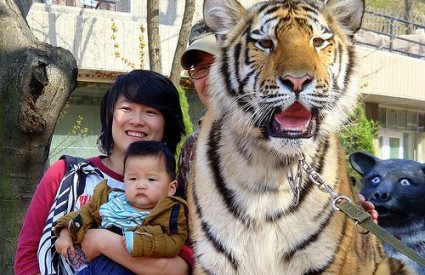 1. Tigar na uzici koji se fotografira s bebom