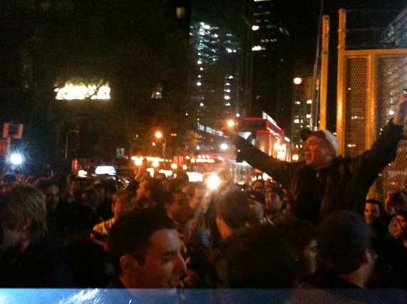 U New Yorku slavlje su započeli vatrogasci koji su u rušenju blizanaca Svjetskog trgovinskog centra pretpjeli najviše žrtava. Došli su na Times Square s nekoliko vatrogasnih kola pod sirenama i svjetlima, popeli se na kamione i krenuli sa slavljem. Ubrzo im se pridružilo nekoliko tisuća ljudi, a velika je gužva i na Ground Zero, mjestu gdje su stajali Blizanci.