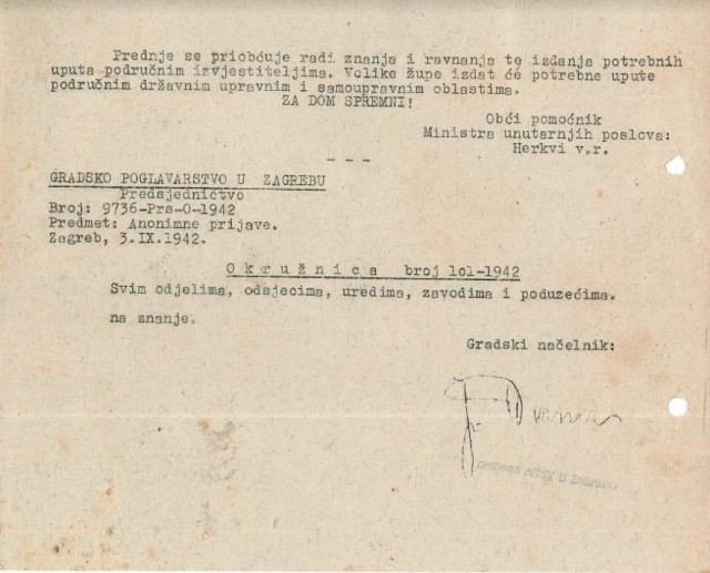 Glavno tajništvo Predsjedništva Vlade NDH uputilo je u kolovozu 1942. visokim upravnim oblastima okružnicu kojom se požalilo na učestalo slanje anonimnih prijava državnim oblastima...