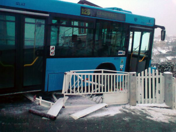 Nizbrdica i neočišćen snijeg autobus su zanijeli te je zadnjim krajem udario prvo u ogradu kućnog broja 20