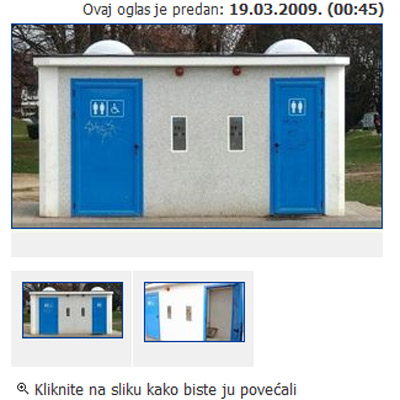 Prodaje se javni WC cca 18 m2 u Dubecu na okretištu tramvaja. Moderan, novogradnja. Papiri nisu čisti. Napravio kum. Hitno! Cijena 11 600 eura po kvadratu. Tražiti Milana.