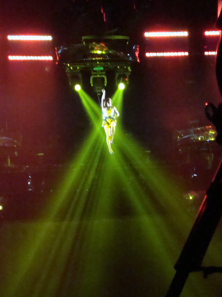 Nakon jednog od pet ili šest presvlačenja Beyonce je završila pod krovom dvorane na trapezu, što je uz odlično dizajniranu rasvjetu izazvalo pravu pomamu, pogotovo činjenica da se spustila na otočić među fanovima i tamo odradila sljedeće tri pjesme, komunicirajući direktno s publikom.