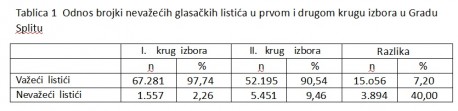 Brojka nevažećih glasačkih listića u drugome izbornome krugu povećala se tri i pol puta u odnosu na prvi krug, od 1.557 nevažećih listića na 5.451 nevažeći glasački listić! Kako je to moguće i je li to moguće legalno i demokratski? Istodobno, u drugome krugu gradonačelničkih izbora u Gradu Zagrebu postotak nevažećih glasačkih listića iznosio je 2,11 za razliku od 9,46 posto nevažećih listića u Gradu Splitu, usprkos i usuprot neusporedivo većoj brojki od 285.067 birača koji su glasovali u odnosu na Grad Split gdje je glasovalo samo 57.646 birača!