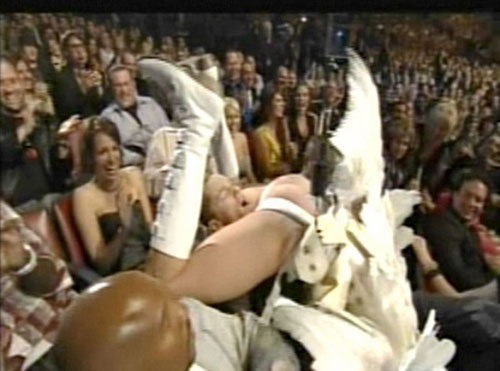 Opet, producent MTV dodjele, Mark Burnett, tvrdi kako je kranom kojim se spustio upravljao Cohen te je sam u posljednji trenutak odlučio kamo će se spustiti. (metro-portal)