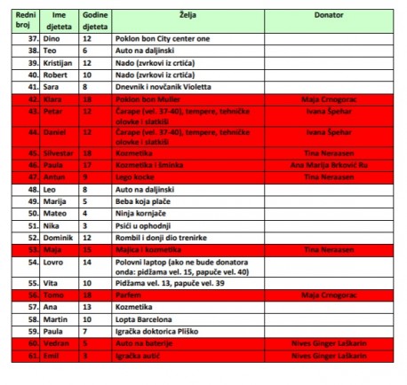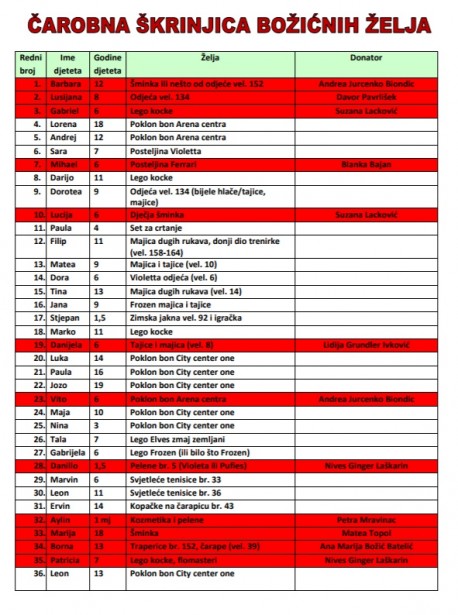 P.S.Crvenom bojom označeni su pokloni koji su rezervirani.