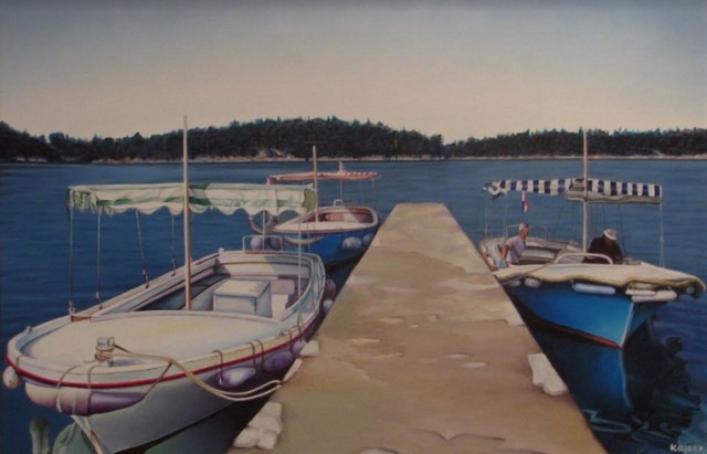 Kajzer osobito voli portretirati male lučice u kojima svoju sigurnost pronalazi nekoliko čamaca, na ovim slikama oni miruju, spavaju i obnavljaju svoju snagu za novi susret s morem, s različitim licima mora koje nije uvijek ugodno i dobrostivo. To su mjesta koja jedva bilježe protok vremena, vrijeme je na ovim slikama današnje ali to isto tako može biti i trenutak od prije više desetaka godina ili čak i više. Sve miruje, gotovo bez zvuka, sunčano je i veoma toplo, i more miruje, nema ljudi, sklonili se od žege, tek se ponegdje začuju galebovi i možemo ih vidjeti kako se strmoglavljuju prema vodi, prema plijenu. Gotovo idilična atmosfera, svijeta koga se rado prisjećamo i koga danas ima u malim količinama. Kajzer vrlo osjećajno slika svijet naših sjećanja.