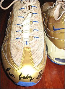 Na aukciju su stigle i cipele iz Sjedinjenih Američkih Država. Britanski pop-superstar Robin Williams je iz svog američkog doma poslao par ručno rađenih zlatnih tenisica s potpisom.