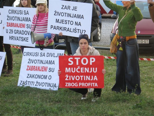 Udruga Prijatelji životinja prosvjedovala je jučer nasuprot Bundeku ispred cirkusa, a prosvjedovat će i danas