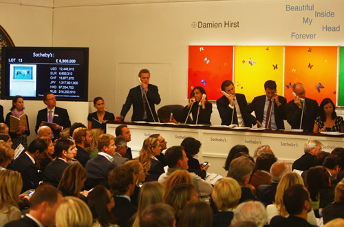 Djela, koja su sva odreda nastala 2008., Hirst je prodavao na dražbi bez posrednika, odnosno trgovaca umjetnina, pa je tako uštedio 40 do 50 posto provizije. To se još nije dogodilo u Sotheby'su u 264 godine njegova postojanja.