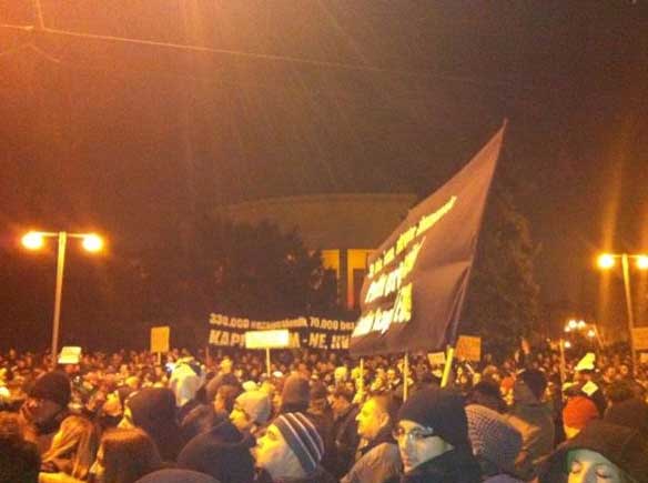 Naravno, neizostavan slogan bio je i Bacite nam Hebranga :). Prosvjednici su krenuli Zvonimirovom prema Maksimiru, automobili u prolazu trube u znak podrške, skandira se Svi na ulice.