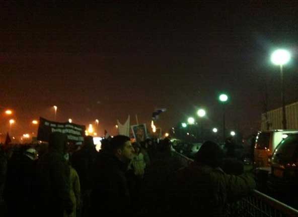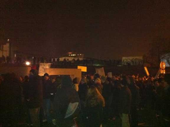 Prosvjednici su Savskom stigli do Frankopanske i odlučili krenuti prema Markovom trgu Mesničkom ulicom. Iznad Streljačke ih je zaustavio kordon policije i trenutno se nalaze tamo. Skandira se protiv Jadranke Kosor, viče se Svi na ulice i zviždi. Ponekad se glasaju kao Indijanci.