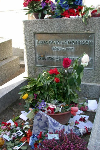 Još 1804. godine Napoleon Bonaparte dao je izgraditi groblje Pére-Lachaise u Parizu. Na njemu se nalaze ostaci tisuća proslavljenih umjetnika, pisaca i glazbenika, uključujući Edith Piaf i Oscara Wildea. Ali najposjećeniji grob, ujedno i peti na ovoj listi, upravo je onaj koji pripada glazbenoj legendi Jimu Morrisonu koji je umro od infarkta u Parizu 1971. godine. Upravo njegov grob zauzeo je peto mjesto na ovoj listi. Svakoga dana, horde turista okružuju njegov nadgrobni spomenik prekriven grafitima fanova.Čak i kad se radi o smrti, Bob Marley može prirediti odličan tulum. Od 1991., kada je jamajkanska vlada proglasila pjevačev rođendan 6. veljače nacionalnim praznikom, tisuće fanova okupile su se na godišnjem festivalu nedaleko od njegovog groba - mauzoleja koji je podignut blizu sela u kojemu je odrastao. U blizini sela nalazi se i reggae gift shop. Grob Boba Marleya našao se na šestom mjestu.