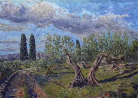 Kličinović osobito voli promatrati nemirno more ispod namrgođene gore i to kroz grane maslina, stojeći u kakvom starom masliniku, okružen drevnim mirom i slikati ga