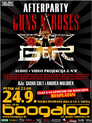 U petak 24. rujna u velikoj dvorani zagrebačkog Boogaloo Cluba održat će se veliki after party nakon koncerta američke supergrupe Guns N' Roses.