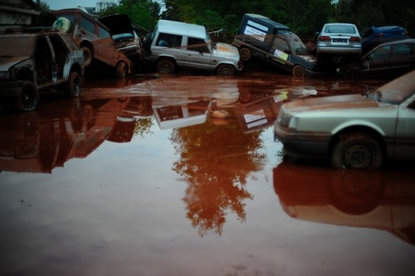 Ulice Devecsera i Kolontára sliče sceni iz holivudskog filma katastrofe: automobili i debla po ulicama, vojnici odjeveni u kemijsku zaštitnu opremu te stalan pogled na crveni toksični mulj koji guta ovo područje. Mađarska je proglasila izvanredno stanje u tri regije nakon poplave crvenog mulja iz kemijske tvornice koji je ubio četvero i ozlijedio 120 osoba.