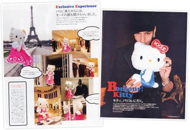 Hello Kitty, popularni lik u Japanu i ostatku svijeta, za lipanjsko izdanje japanskog Voguea nosi kreacije Johna Galliana za Dior. Kittyin modni editorijal snimljen je za sezonu jesen/zima, a pozirala je s Gallianom, uživajući u shoppingu u Parizu. John Galliano nikad se nije libio napraviti nešto potpuno drukčije u modi. Njegova božićna čestitka za Dior 2007. tipičan je primjer kako može biti netipični kreator. Kada je objavljeno da će upravo on odjenuti Hello Kitty za japansko izdanje Voguea, činilo se to posve logičnim izborom. Hoće li još likova iz animiranih filmova biti angažirano za modne editorijale? S Gallianom je sve moguće. Ovo je prvi put u povijesti modne kuće Dior da lik iz crtića nosi cijelu njihovu kolekciju. Japanska animacija i njeni likovi imali su snažan utjecaj na svijet mode u posljednjih nekoliko sezona.
