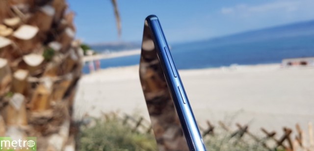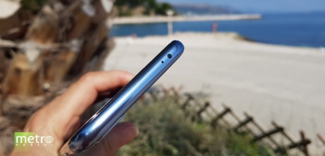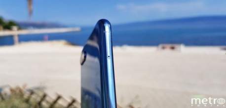 Širina bočnih okvira je oko 3 mm i prema gornjem rubu 5 mm gdje je pomalo kontroverzni urez u koji su smješteni zvučnik za razgovore, kamera i senzori LED indikator događaja. Nisam koristila opciju u sustavu kojom se može dodati crna traka i sakriti urez jer mi nije trn u oku. Sviđa mi se što su razina baterije i druge informacije pozicionirane na istoj širini kao što je sam urez.