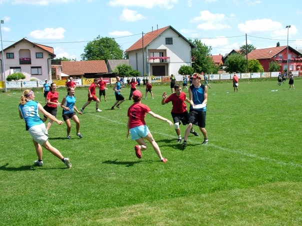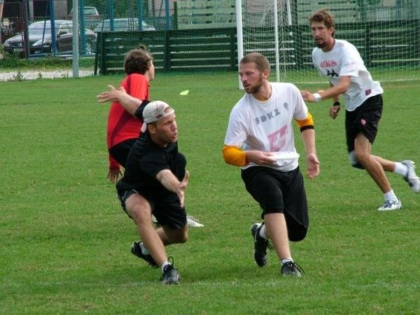 Što je ultimate frizbi?Ultimate frizbi je brz i atraktivan sport, baziran na fair-playu, kojeg zajedno igraju muškarci i žene. Pored sportskog nadmetanja i natjecateljskog duha, ultimate potiče poštovanje i dijalog među igračima (Spirit Of The Game), što mu daje dimenziju više u odnosu na ostale sportove. Na terenu podijeljenom na 3 dijela (dvije gol zone i središnji dio), igraju dvije momčadi, a cilj igre je zabiti što više golova, tj. uhvatiti disk u protivničkoj gol zoni.