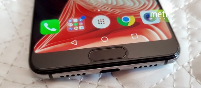 Na dnu ekrana širine 6,4 cm i visine 13,27 cm je kapacitivna Home tipka u metalnom prstenu s identifikacijskim modulom otiska prstiju i stopom prepoznavanja 0.6 sekundi. Za neke od vas smještaj ove tipke nedvojbeno će biti plus u odnosu na poziciju na stražnjoj strani. Ne postoji rizik od pogrešnog pritiska na objektiv kamere i puno je lakše suptilno otključati tijekom nekog sastanka, umjesto podići uređaj s pisaćeg stola. U biti, svako rješenje ima svoje prednosti i nedostatke.