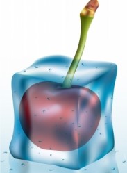 Za sokove i koktele posebno je atraktivan led u kojem se nalazi komadić voća - naranče, limuna, banane, višnje, maline ili grožđa. Ako je voće posebno vodenasto, možete ga zamrznuti u posudi za led i bez vode - dinja, lubenica, nektarina, breskva...