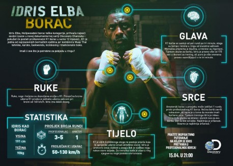 U novom serijalu, "IDRIS ELBA: BORAC", koji se od 15. travnja u 21:00 prikazuje na Discovery Channelu, Elba će pristati na psihički i mentalno najzahtjevnije iskustvo u karijeri - obuku da postane profesionalni kickboxer koji će se u konačnici natjecati protiv iskusnog borca u borbi jedan na jedan.