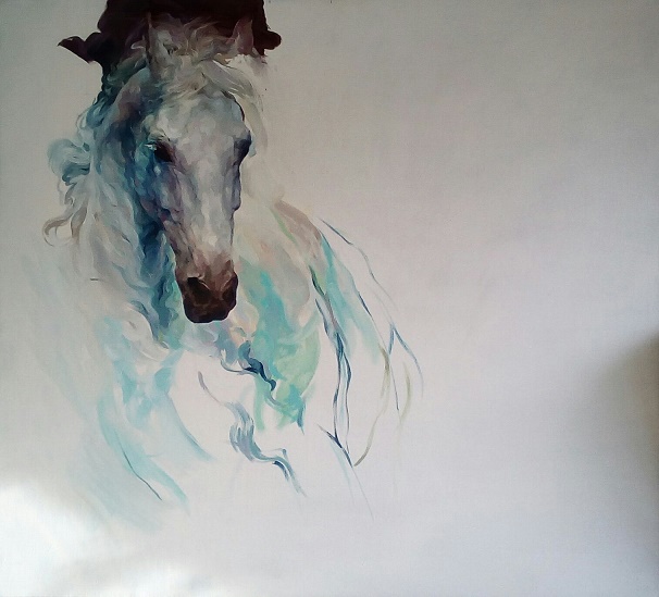 Svijet Olene Sokolovske izrazito je nježan, blag, odmjeren, pa i kada koristi motiv konja u trku, moćne četveronožne figure, koja sada samo nestrpljivo zamahuje grivom u jutarnjim izmaglicama bijelih i prozirnih pramenova koji klize ,lebde neposredno iznad trave ili dok sjetno bilježi sjećanje na koloplet čudesnih duguljastih prepletenih oblika u posve nefigurativnom izrazu ili dok kreira svoje viđenje privlačnog krajobraza s nekoliko figura u središtu kompozicije.