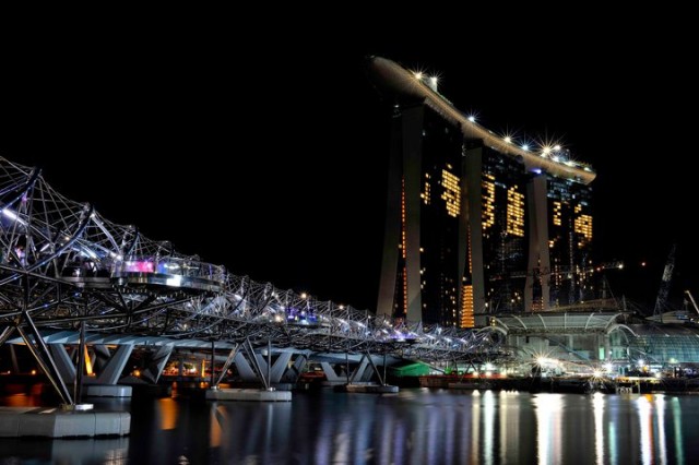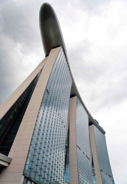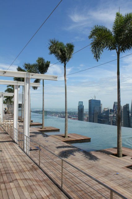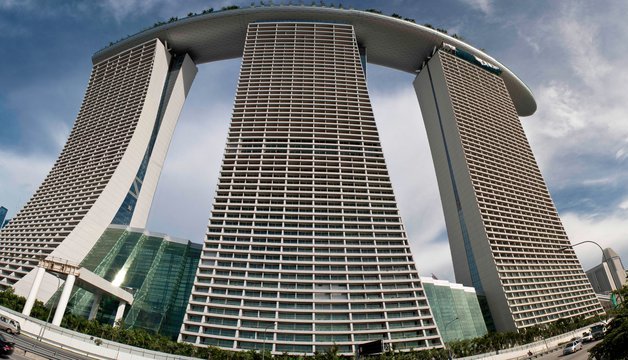 Hotel Marina Bay Sands u Singapuru sastoji se od tri individualna nebodera koje međusobno spaja 340 metara dugačak "brod" na visini od 200 metara u kojem su smješteni razni zabavni sadržaji. Posebna je atrakcija veliki bazen iz kojeg se pruža jedinstven pogled na grad.