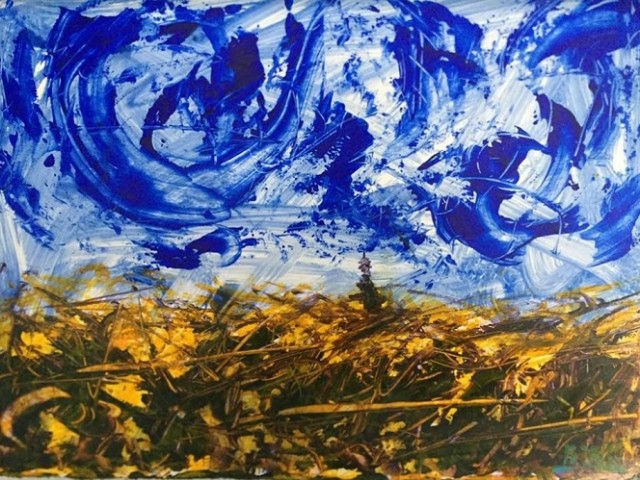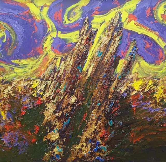 I ovom prigodom opažamo nastavak razvoja karakterističnog motiva, odnosa slojeva,igru ploha, odnosa neba i zemlje uz izrazite turbulencije u prostoru između, sve izvedeno snažnom kolorističkom gestom, u različitim kombinacijama dominantnih boja.