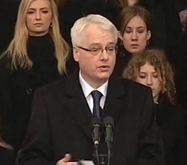 U svom je govoru zahvalio svim časnim ljudima koji su se borili, a mnogi i poginuli, za slobodnu i pravednu Hrvatsku, a zahvalu na iznimnom doprinosu razvoju hrvatske demokracije uputio je i svom prethodniku, Stjepanu Mesiću.