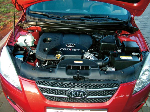Testirani Cee’d ima vrlo dobra vozna svojstva. Od dva dizelaša u ponudi, pokretao ga je manji i slabiji 1,6 litreni CRDi common-rail turbodizelaš sa 115 KS i okretnim momentom od 225 Nm. Motor je kultiviran i sasvim dobro odgovara obiteljskom karakteru Cee’d-a. Smetalo nas je što prije pokretanja, motor topao ili hladan, treba 5-6 sekundi čekati grijače da odrade svoj posao.