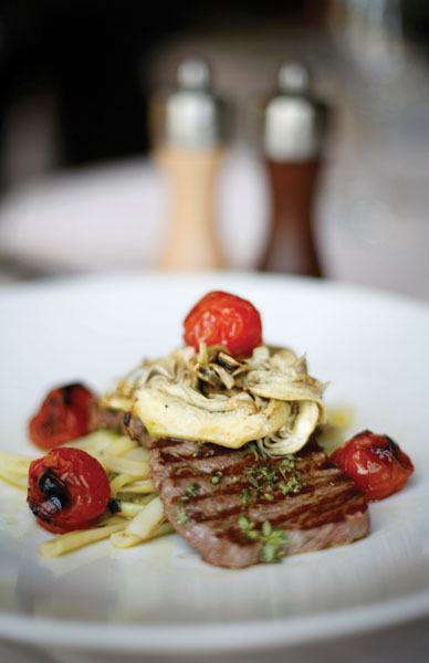 Odresci junećeg bubrežnjaka sa salatom od mahuna i pečenim artičokama