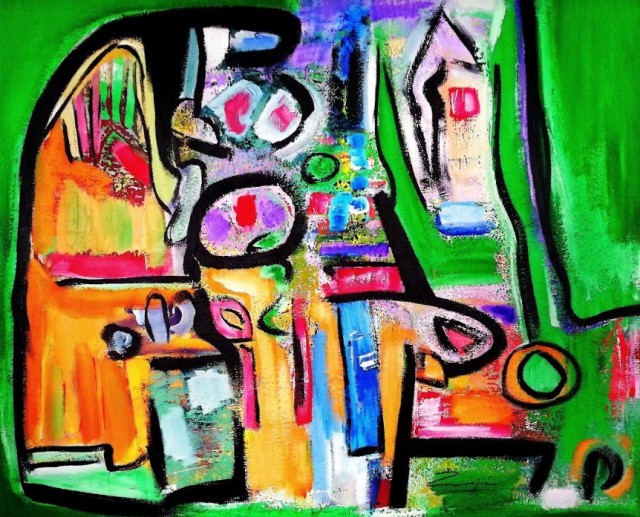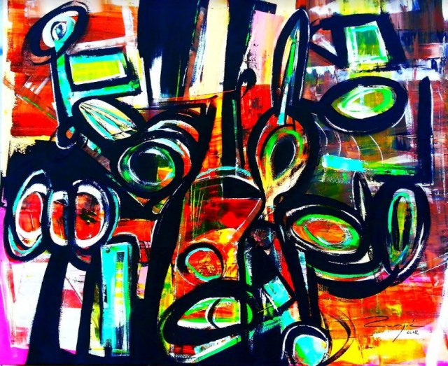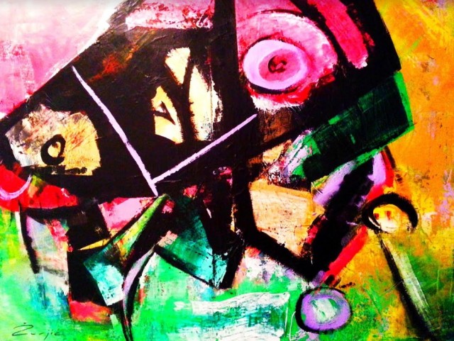Kolor Mladena Žunjića sve je razigraniji, na trenutke sam dojma, kako je gibanje obojanih ploha gotovo nezaustavljivo jer ove slike uopće ne miruju, stalno su u pokretu, ritmičnost gibanja je ključna.
