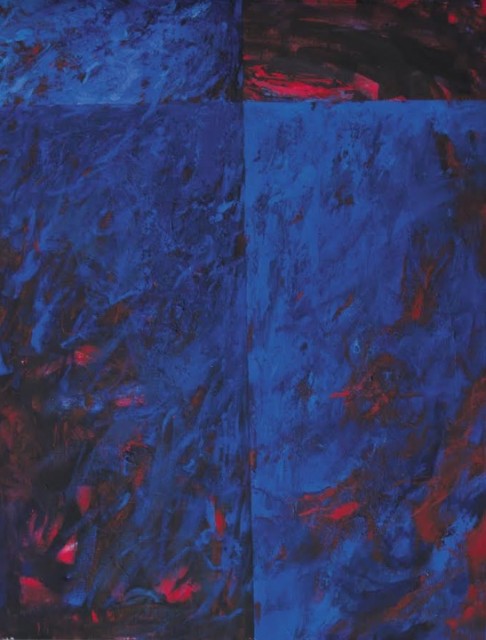 Na velikim se formatima sjajno ocrtava drama , uznemirena tektonika dominantnih ploha slojevitih nanosa boje, napetost unutar volumena slika izuzetna je, slijed događanja je na vrhuncu.