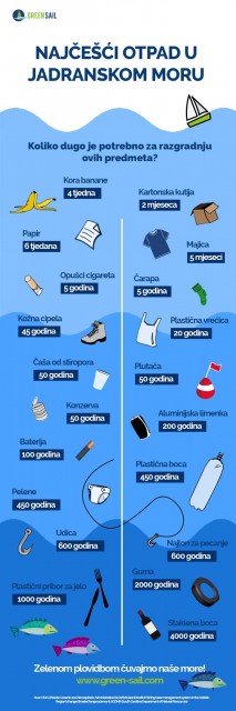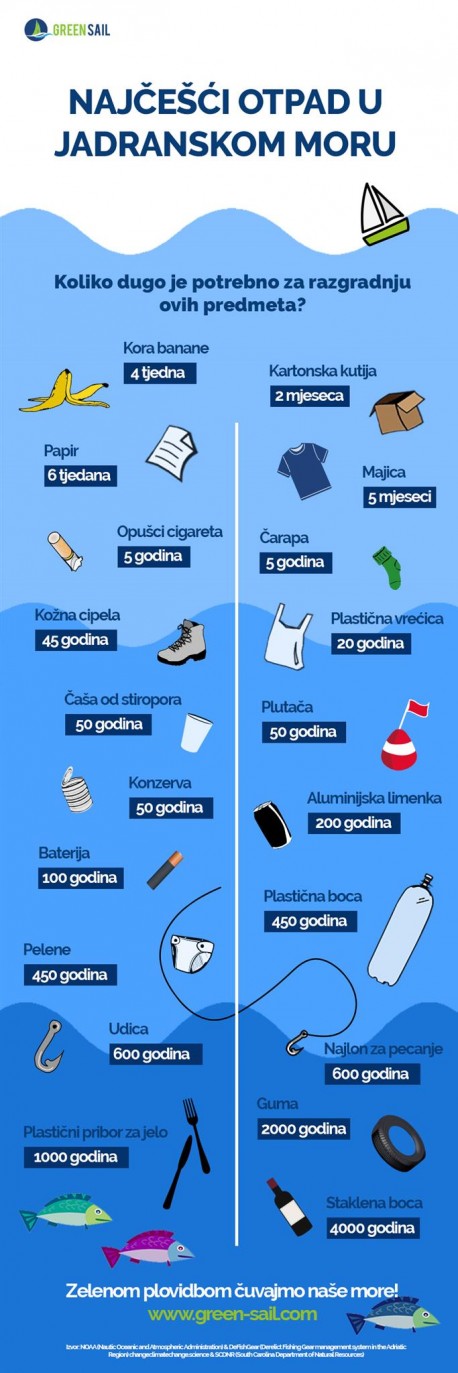 Green Sail je inicijativa koja je napravila zanimljivu infografiku kako bi ukazala na problem onečišćenja Jadranskog mora te pokušala osvijestiti nautičare, turiste i lokalnu zajednicu o tom rastućem problemu.