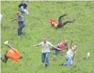 2. Natjecanje u kotrljanju sira niz brdo, Velika Britanija Zvuči tako jednostavno, zar ne? Cilj ovog natjecanja jest u što kraćem vremenu uspješno otkotrljati komad četiri kilograma teškog Gloucester sira niz (vrlo strmo) brdo. Osoba koja to učini najbrže postaje ponosni vlasnik sira kojeg je upravo uspješno spustio nizbrdo, a ostali idu doma slomljenih rebara, isčašenih gležnjeva ili drugih vrlo čestih ozljeda. Jesu li četiri kile sira doista vrijedne toga? Vjerojatno nisu. Zbog čega to veliki broj ljudi svejedno radni? Zbog sira, naravno.
