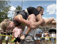 1. Svjetsko prvenstvo u nošenju supruga, Finska Sve što trebate za prijavu na ovo prvenstvo jest životna izabranica i puno dobre volje. Pobjednik natjecanja osvaja onoliko litara piva koliko teži njegova supruga, što otvara prostor nevjerojatnoj količini taktiziranja, budući da za pobjedu morate najbrže pretrčati stazu dugu 250 metara prepunu raznih prepreka, a sve vrijeme noseći svoju dragu na leđima. Supruge moraju imati minimalno 49 kilograma, a svaka situacija u kojoj dotična sklizne ili padne na pod kažnjava se sa dodatnih 15 sekundi. Neka igre počnu!
