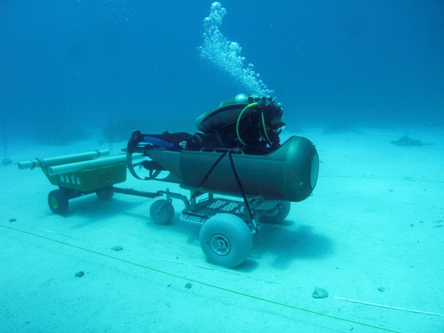 Podvodni trening uključuje razne vježbe, između ostalog, istovar četiri metara dugačkog i dva i pol metara visokog rovera iz letjelice pomoću prikladnog dizala.